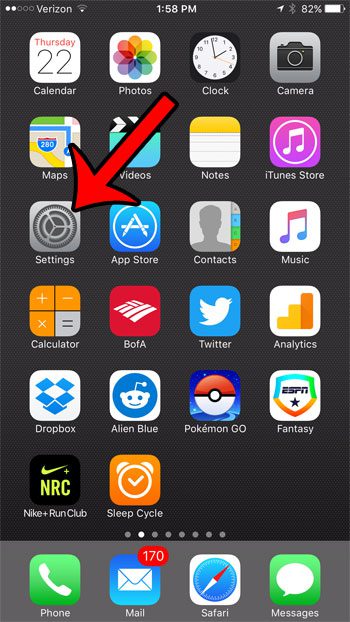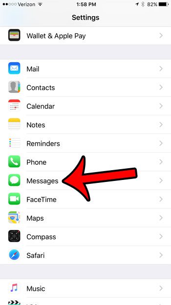 Stegen nedan utfördes på en iPhone 7 Plus, i iOS 10. När du har aktiverat den här inställningen kommer din iPhone att skicka bilder med lägre kvalitet i iMessages. Detta kommer att minska mängden data som du använder om du skickar dessa bilder medan du är ansluten till ett mobilnät.