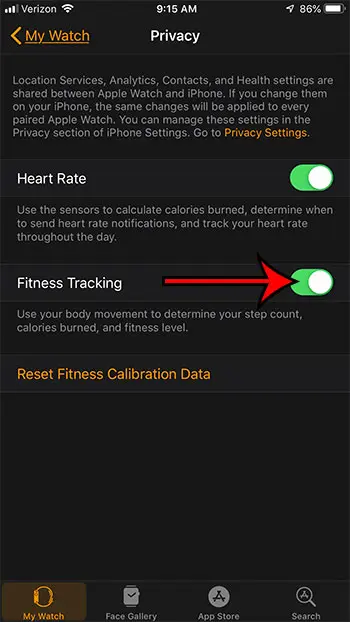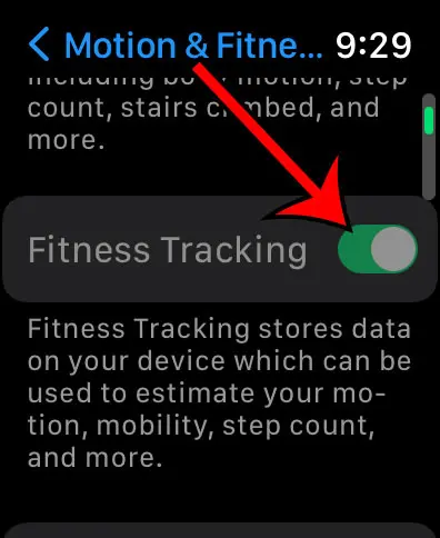 Steg 4: Tryck på knappen till höger omFitnessspårningför att slå på eller av den.