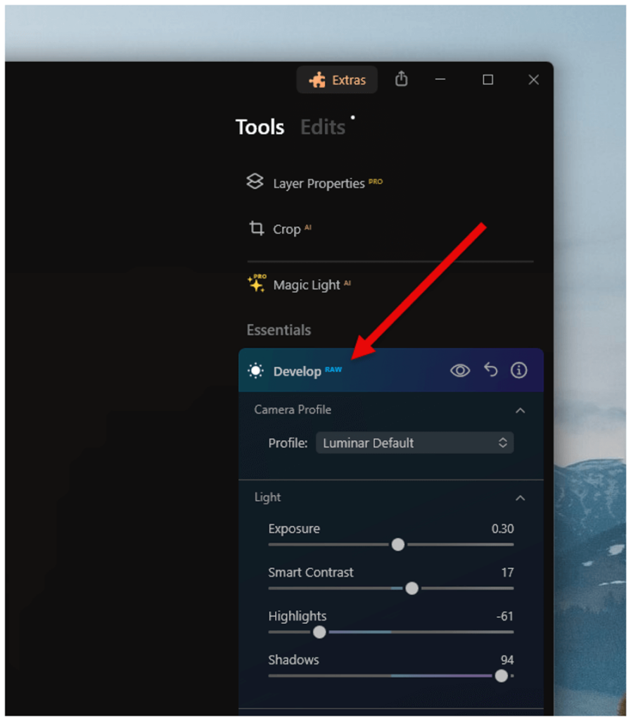 Både Luminar och Affinity Photo har solida RAW-utvecklingsverktyg som täcker alla vanliga alternativ för justering av exponering, vitbalans, högdagrar, skuggor och färg. Båda apparna har också inbyggda verktyg för HDR-sammanfogning, panoramasömmar och fokusstapling.