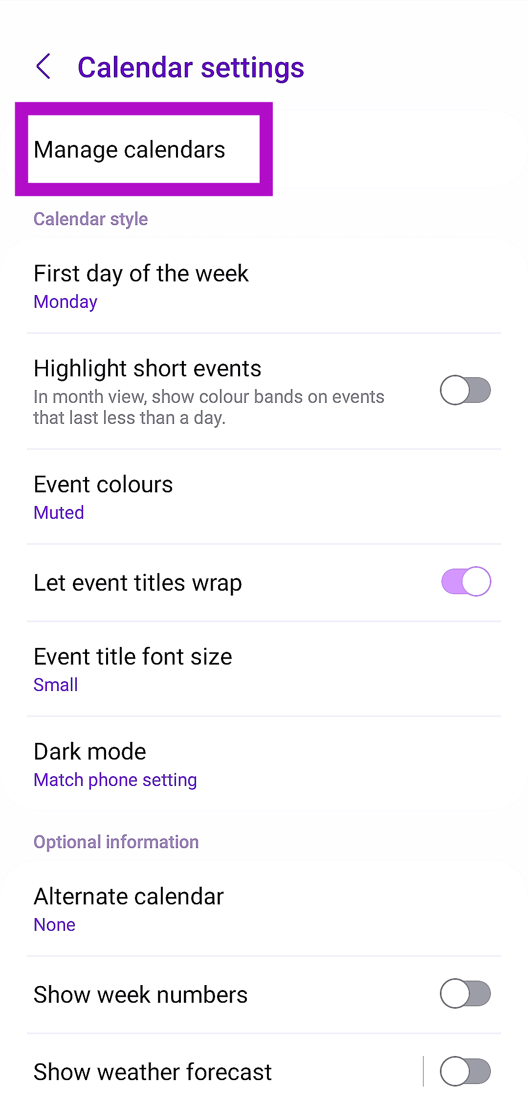 Se till att din önskade kalender är aktiverad i Samsung-appen