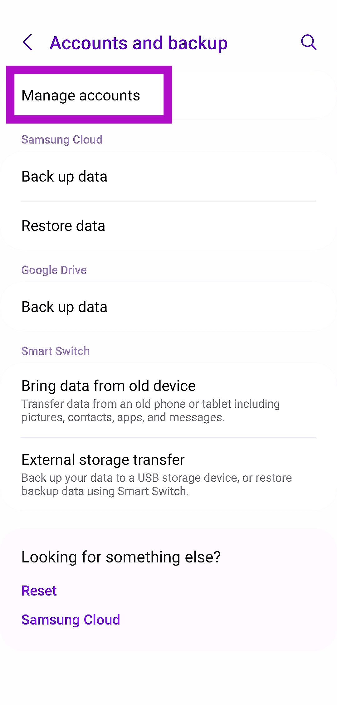 Steg 1:Gå tillInställningaroch väljKonton och backup.