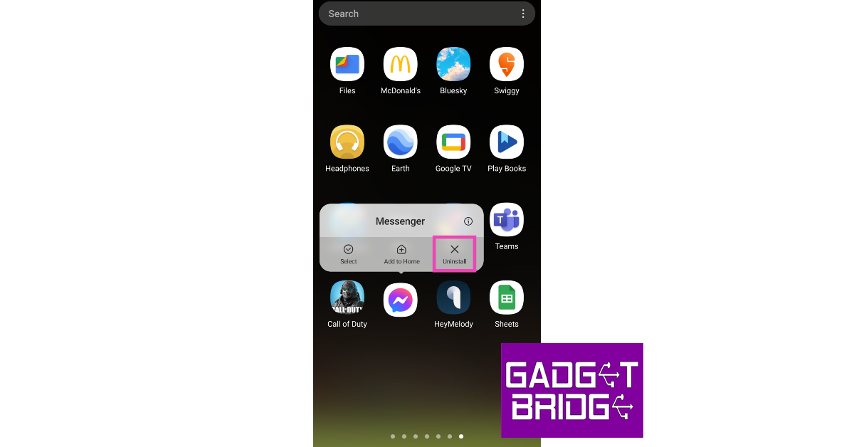 Att ta bortFacebook Messenger från din telefon, tryck bara på och håll ned dess ikon i applådan och välj "Avinstallera".