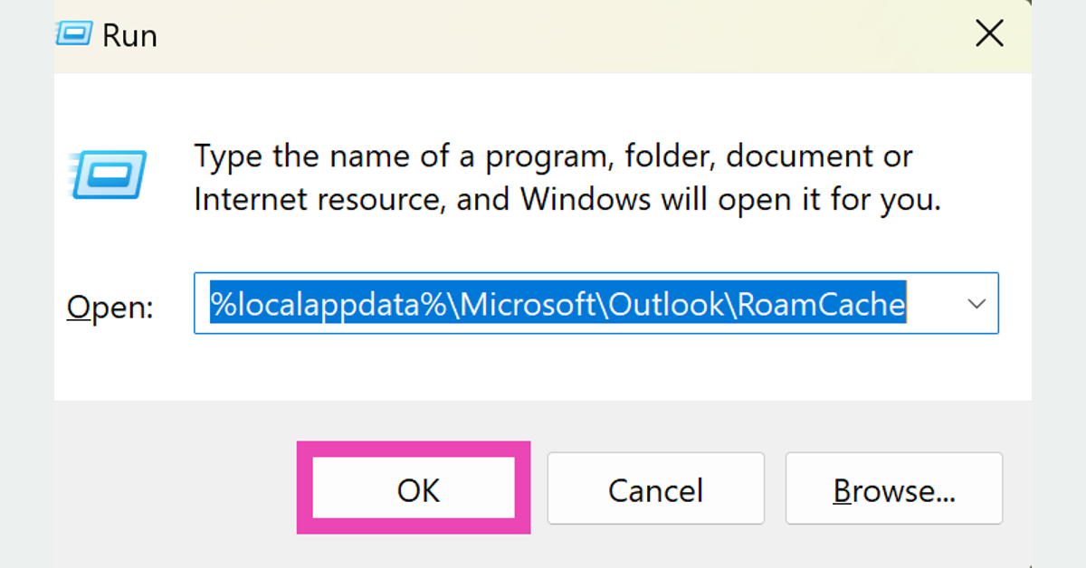 Tryck på Windows-tangent + R, enter%localappdata%MicrosoftOutlookRoamCache,och radera alla filer i mappen som visas på skärmen.
