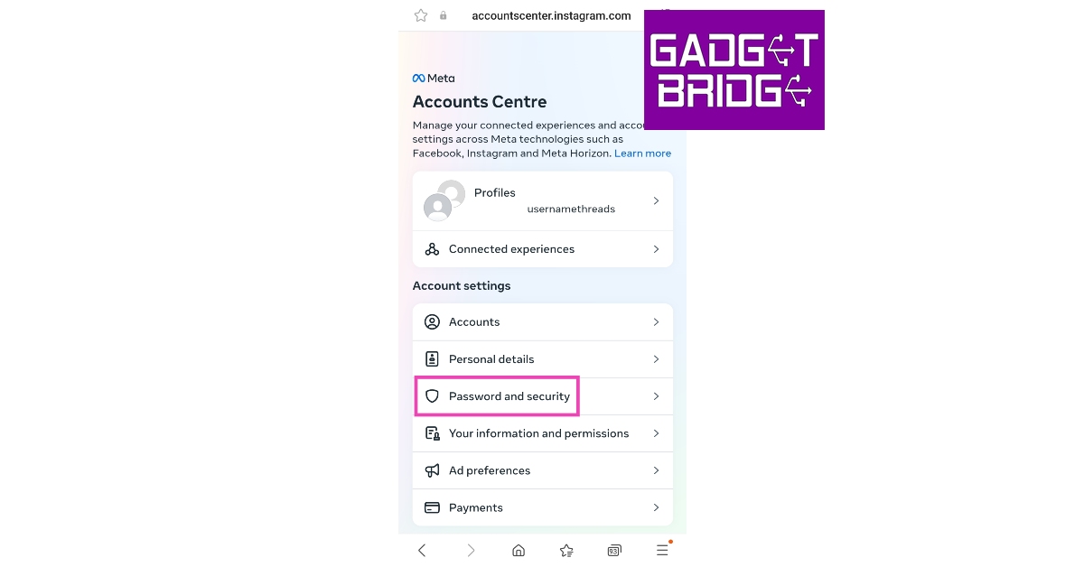 Ta bort anslutna enheter på Instagram med hjälp av mobilwebbplatsen