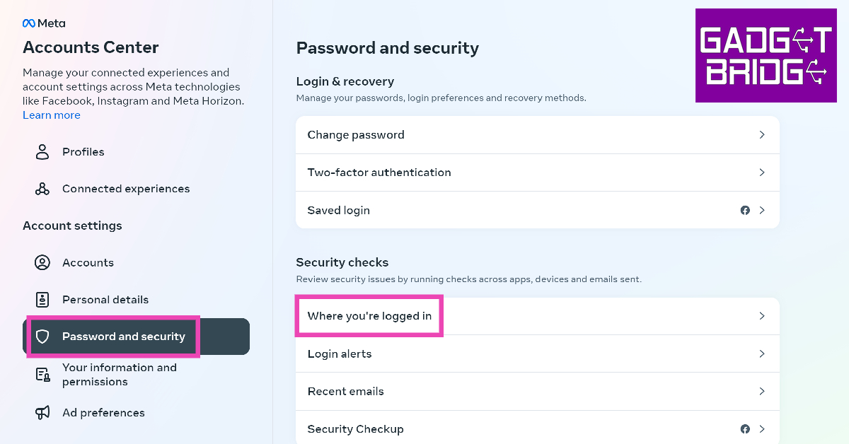 Om någon annan har fått obehörig åtkomst till ditt Instagram-konto, kommer deras enhet att dyka upp i listan över anslutna enheter till ditt konto. Gå tillInstagram>Profil>Meny>Inställningar och sekretess>Kontocenter>Lösenord och säkerhet>Var du är inloggadför att ta reda på vilka enheter som är anslutna till ditt Instagram-konto. Om du inte känner igen en viss enhet kan den tillhöra någon som på något sätt har fått tillgång till ditt konto. Du kan ta bort den här enheten genom att trycka påVälj enheter att logga ut.