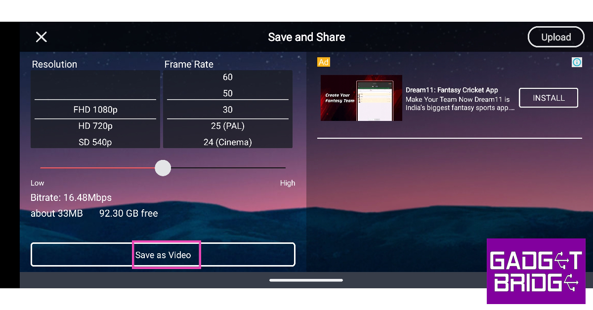 Steg 8:Tryck på "Spara" i det övre högra hörnet av skärmen. Videon kommer att sparas på din enhet.
