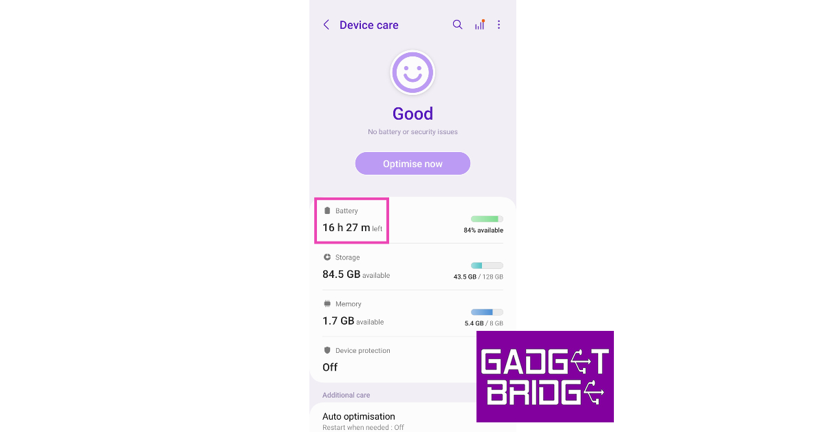 Steg 1:Gå tillInställningaroch väljSkötsel av batterier och enheter.