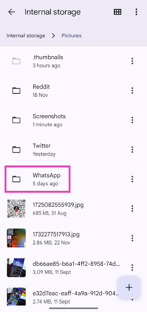 Steg 3:Öppna WhatsApp-mappen och gå tillMedia>WhatsApp-bilder.