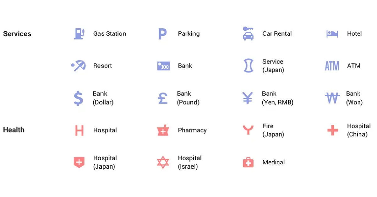 Ikoner och symboler för platser på Google Maps