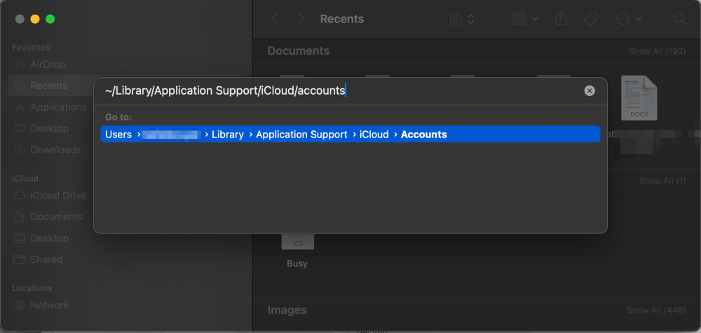 Leta efter~/Library/Application Support/iCloud/Accounts. HitSkriva inatt öppna.