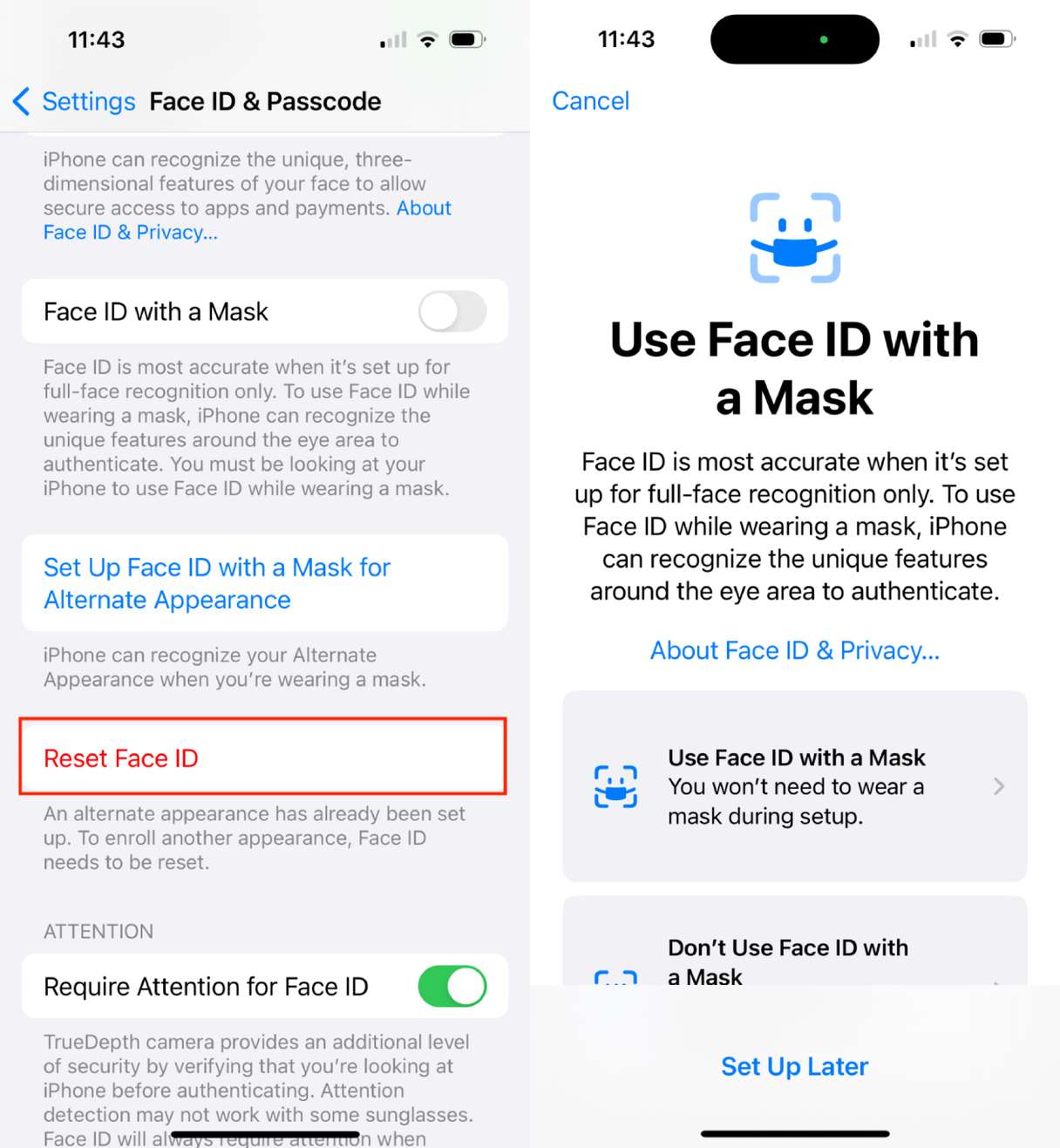 Så här återställer du Face ID för att ta hänsyn till ansiktsförändringar.