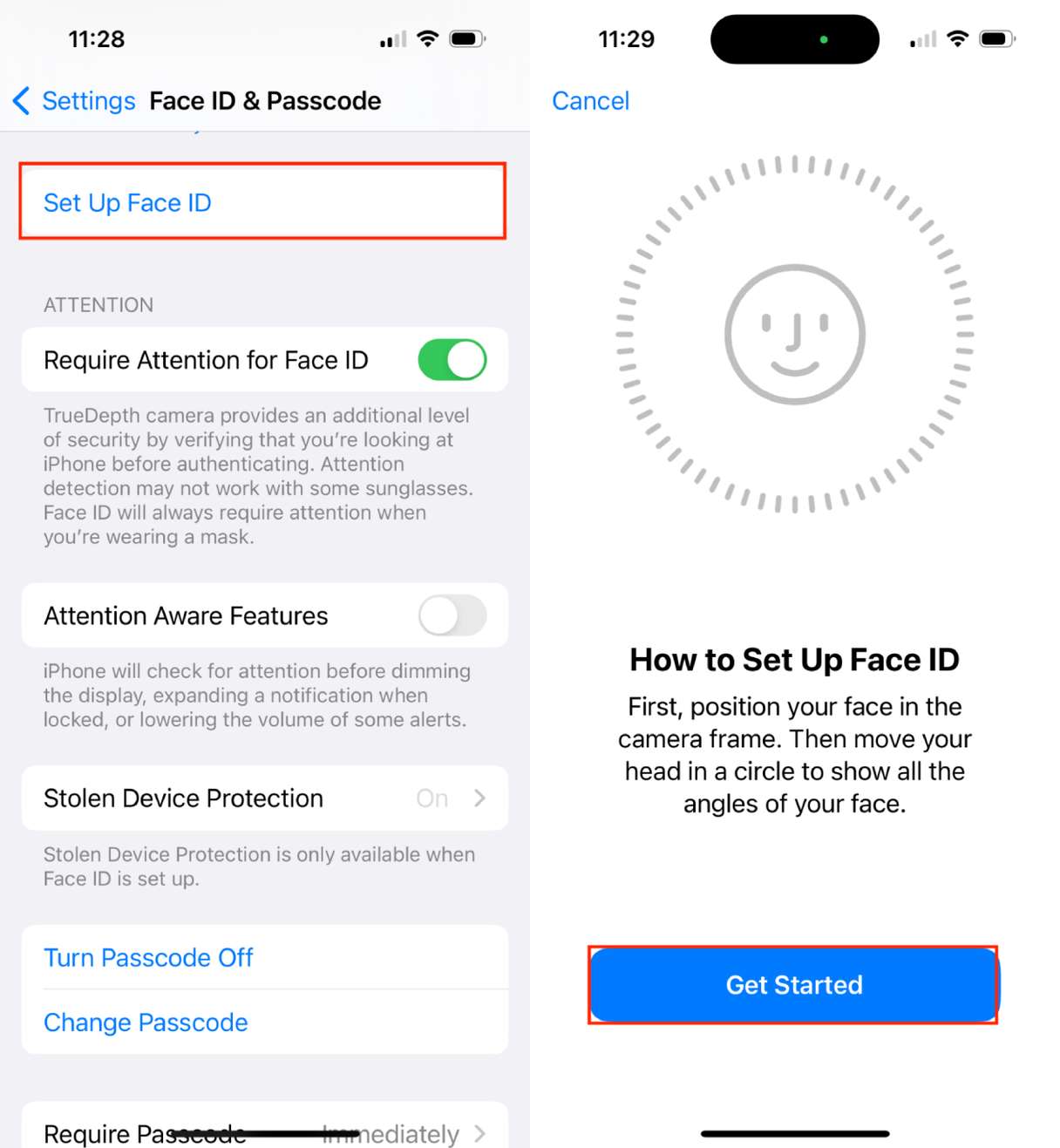 - Följ instruktionerna på skärmen för att skapa ett nytt Face ID.