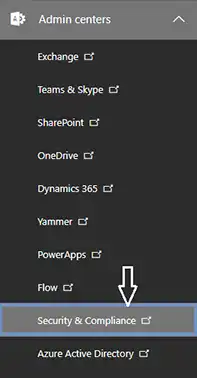 - Wählen Sie anschließendSicherheit und ComplianceOption untenExchange Admin Center.