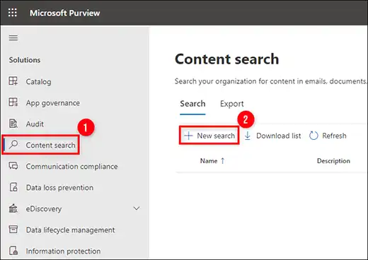 Im Microsoft Purview Compliance-Portal gibt es eine Option für eDiscovery. Mit dieser Option können Sie Inhalte durchsuchen und diese anschließend exportieren. Es funktioniert jedoch nur unter den Betriebssystemen Windows 11, 10, 8 und 7. und Sie benötigen Microsoft .Net Framework 4.5 oder eine neuere Edition. Es gilt auch für den Edge-Browser und erfordert eine Genehmigung des Exchange Admin Center. Befolgen Sie anschließend die folgenden Schritte.