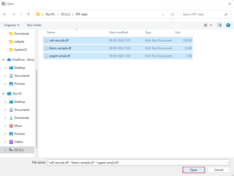 3. Wählen Sie alle nicht löschbaren Dateien von Ihrem Gerät aus. Drücken Sie „Offen”.