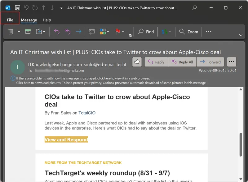 - Öffnen Sie zunächst dieEML-Datei mit MS Outlook.