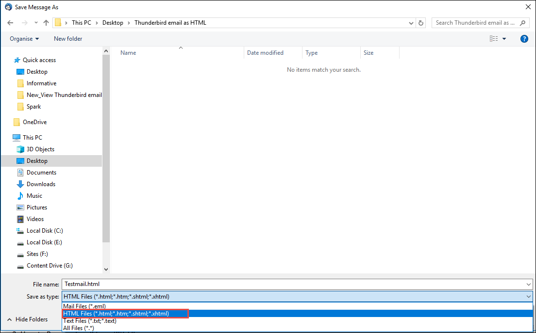 - Als nächstes wählen SieHTMLals Speicherformat aus der angegebenen Option.