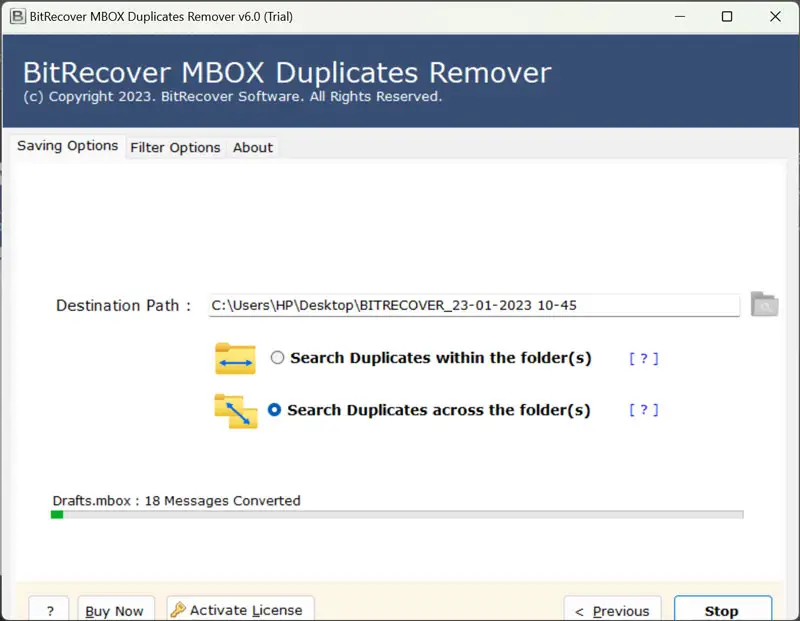- Jetzt können Sie das sehenLive-Duplikat-Entfernungsprozessauf dem Software-Panel