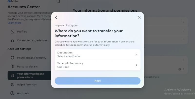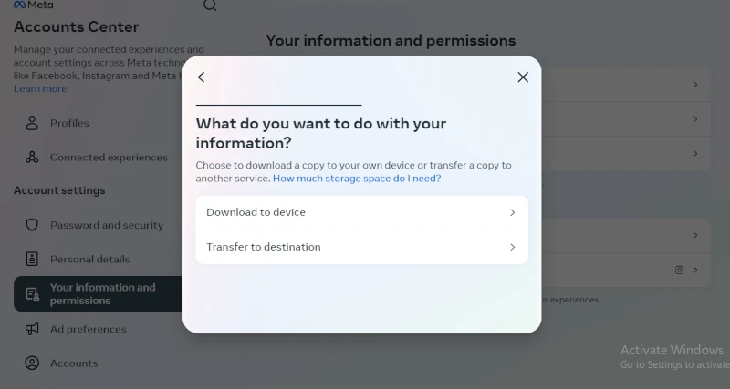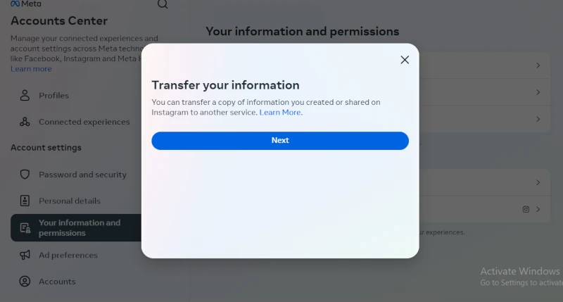 Diese Option wurde speziell zum Herunterladen und Übertragung einer Kopie Ihrer Instagram -Daten an einen bestimmten Ort entwickelt. Befolgen Sie diese Schritte, um zu wissen, wie Sie Instagram -Daten herunterladen, bevor Sie das Konto auf dem gewünschten Pfad löschen: