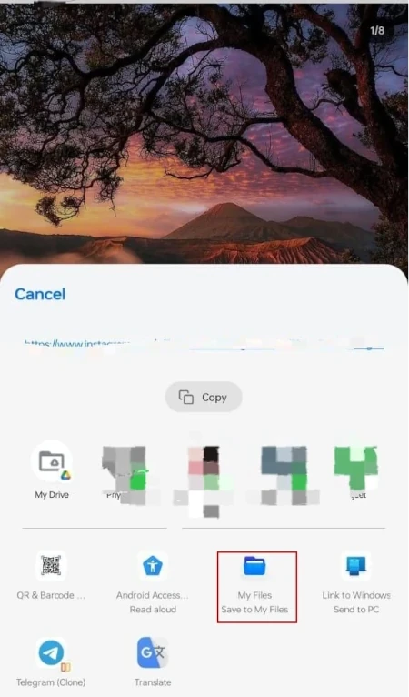 - Jetzt können Sie Ihre Instagram -Fotos herunterladen"Meine Dateien"oder"Fahren".