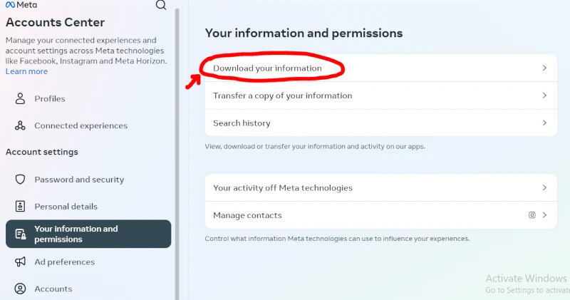 - Klicken Sie auf die"Laden Sie Ihre Informationen herunter"Option.