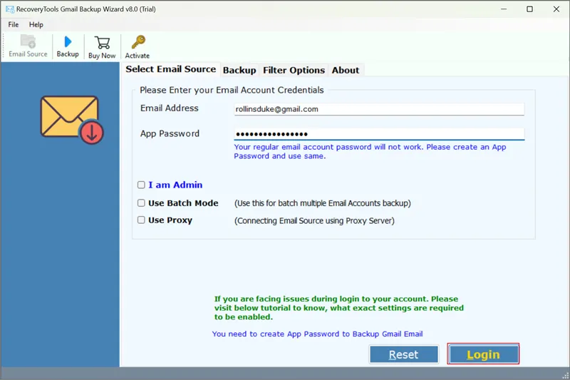 - Starten Sie die Software und geben Sie Ihre einGmail-Anmeldeinformationen, und klicken SieLogin.