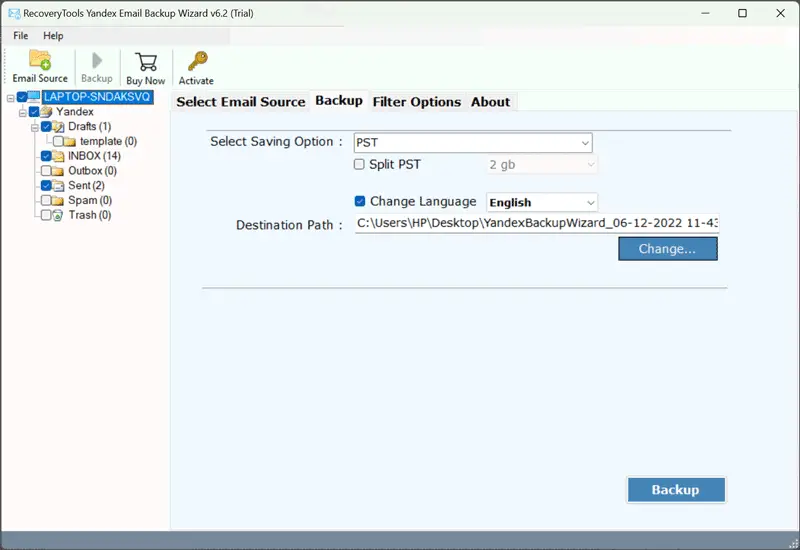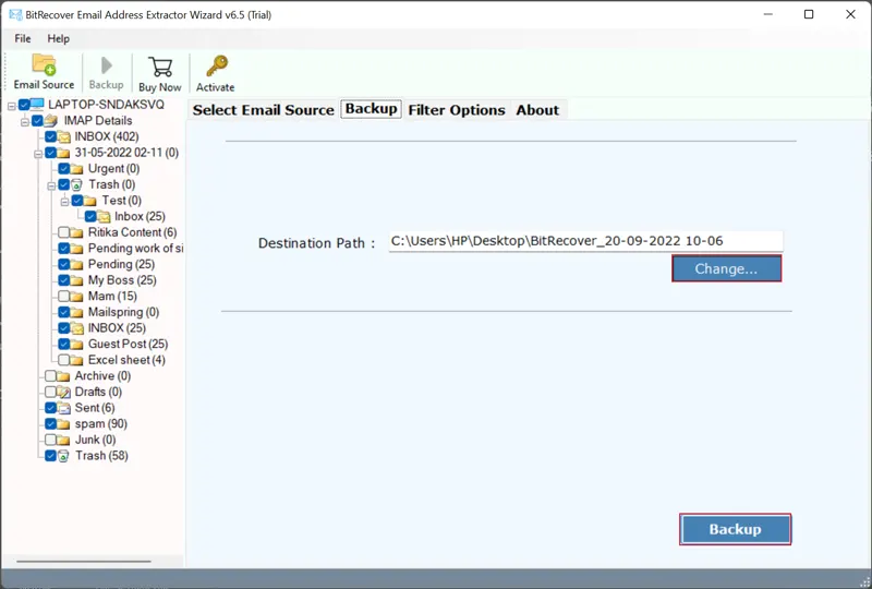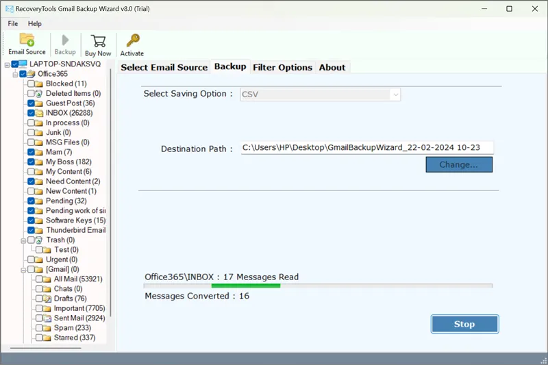 - Klicken Sie aufSicherungKlicken Sie auf die Schaltfläche, um Gmail-E-Mails in das CSV-Format zu exportieren.