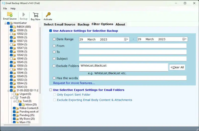 - Wählen Sie die auserforderliche Gmail-Ordnerdie Sie extrahieren möchten.