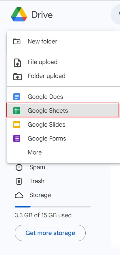 - WählenGoogle Sheetsaus den verfügbaren Auswahlmöglichkeiten.