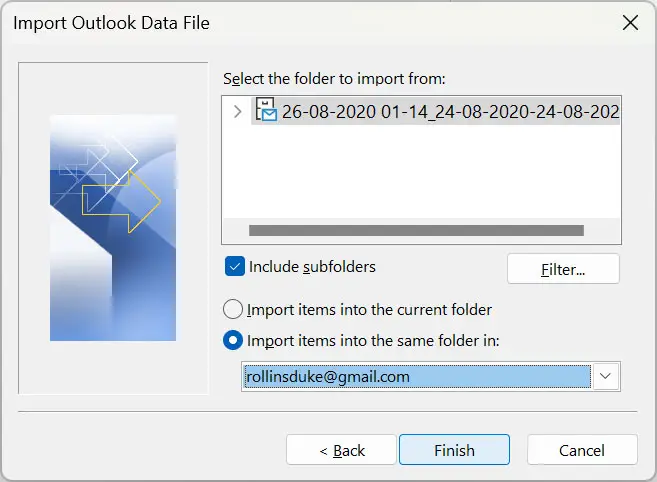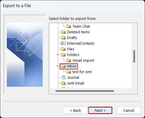 2. Stufe: Gmail-E-Mail aus konfiguriertem MS Outlook exportieren
