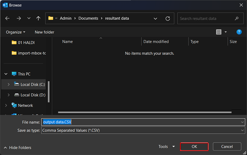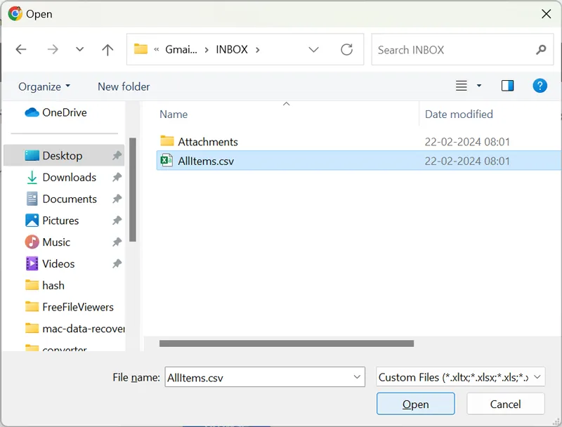 - Wählen Sie das ausCSV-Dateiaus Outlook exportiert und klicken Sie aufOffen.