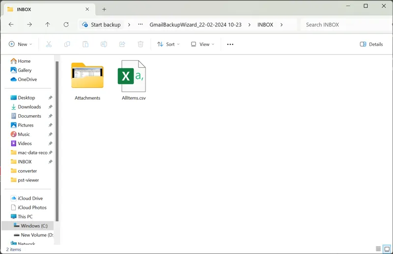 - Zuletzt werden Ihre Gmail-E-Mails heruntergeladenREISSVERSCHLUSSDatei.