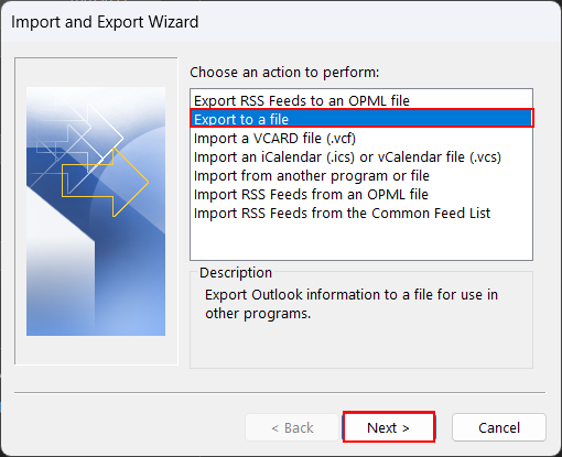 - WählenIn eine Datei exportierenund tippen Sie aufNächsteTaste.