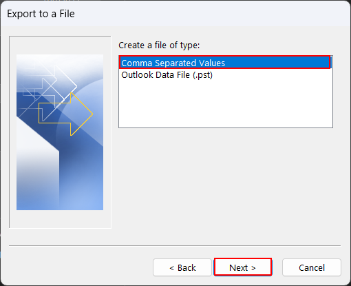 - WählenCSVals Speicheroption aus den verfügbaren Speicheroptionen.