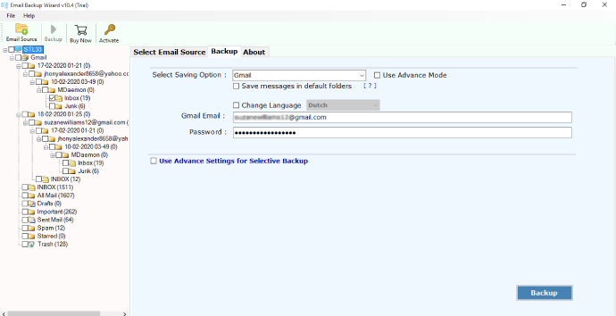 Zum Schluss klicken Sie aufSicherungKlicken Sie auf die Registerkarte, um den Vorgang zum Importieren von TalkTalk-Mails in Gmail zu starten.