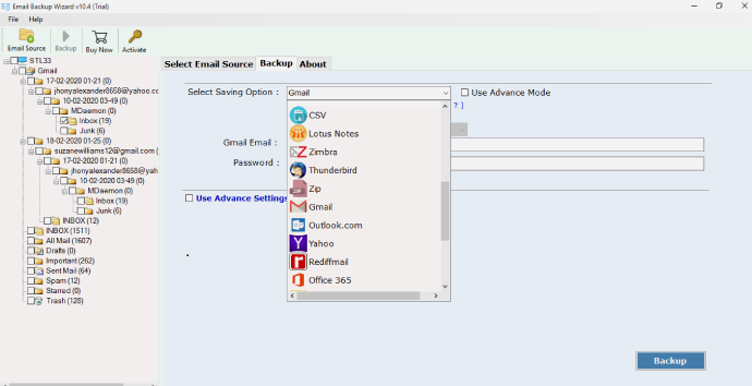 - WählenGoogle Mailals Speicheroption und geben Sie die Gmail-Anmeldedaten ein.