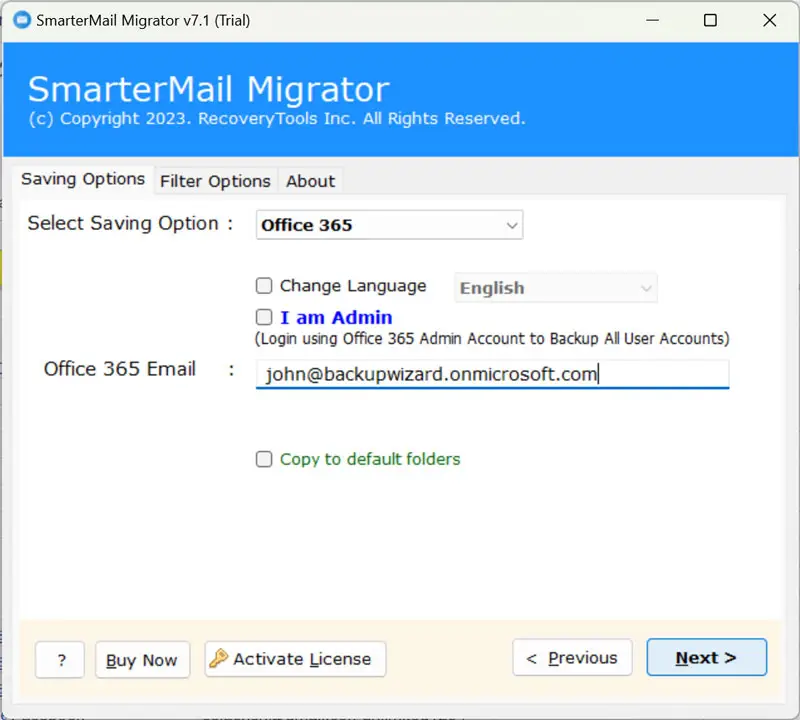 A: Ja,Unsere Entwickler haben eine spezielle Option „In Standardordner kopieren“ hinzugefügt. Aktivieren Sie also zunächst diese Funktion und starten Sie dann die Migration von SmarterMail zu Microsoft 365.
