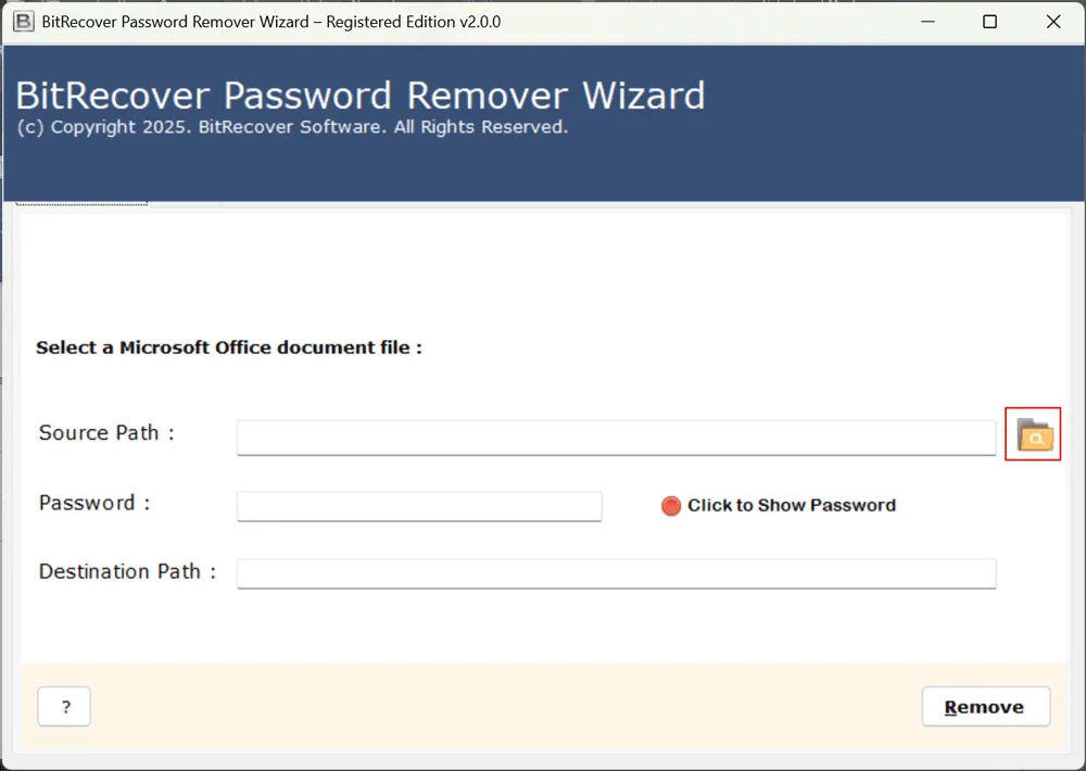 1. Laden Sie die herunter und installieren Sie sieBitRecover DOC Passwort-Entferner.