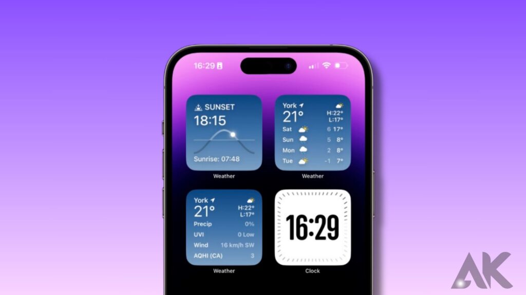 Die Widgets „Details“, „Tagesvorhersage“ und „Sonnenaufgang/Sonnenuntergang“ wurden aktualisiert. Details wie Luftqualität, Windgeschwindigkeit, UV-Index und Niederschlagswahrscheinlichkeit werden angezeigt, während die Tagesvorhersage eine kleine Widget-Version des Wetters der folgenden Tage bereitstellt. Sonnenaufgang/Sonnenuntergang zeigt den Zeitpunkt der Morgen- und Abenddämmerung des Tages an.