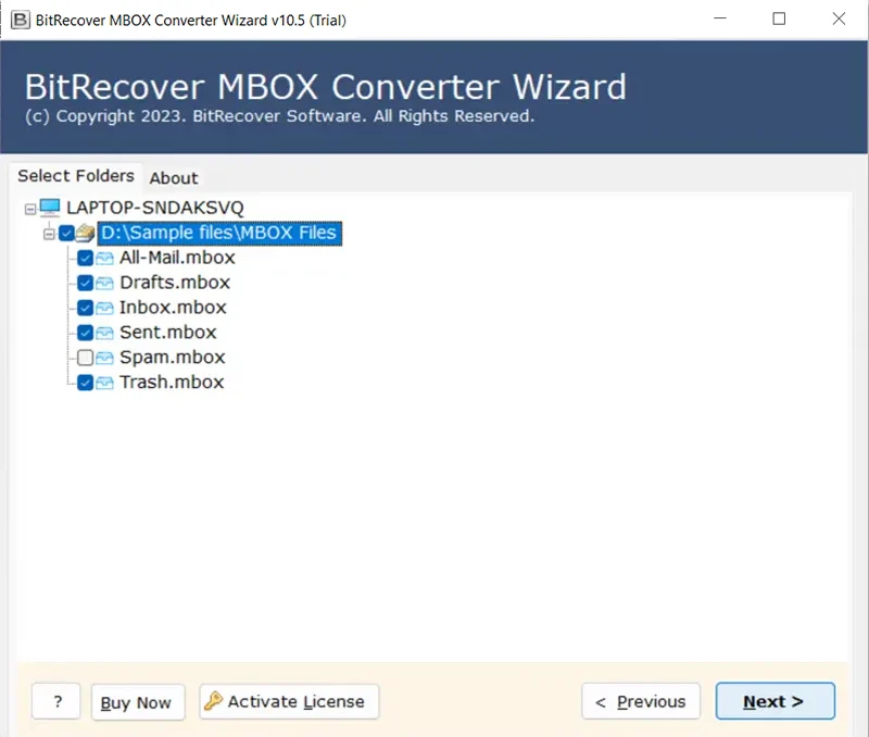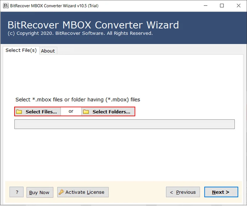2. Wählen Sie Ihr auseinzelne MBOX-Dateiodergesamten Ordnermit MBOX-Dateien.