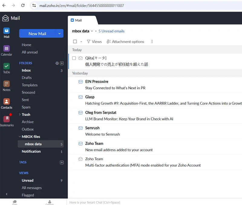 Methode Nr. 3: Industriestandardansatz zum Importieren von MBOX in Zoho Mail.