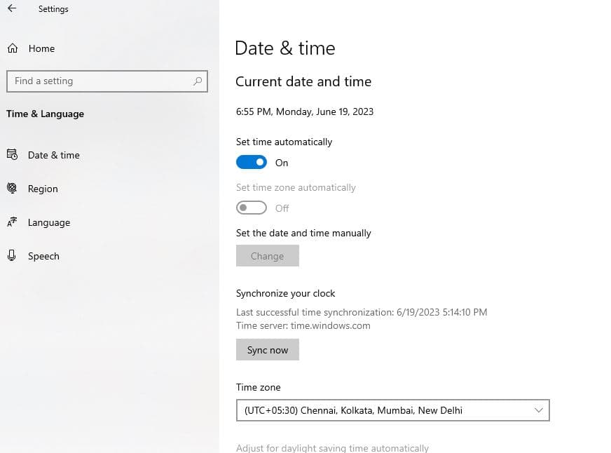 Genaue Datums- und Zeiteinstellungen sind für verschiedene Systemfunktionen wichtig und können die Funktionalität des Microsoft Store indirekt beeinflussen. Sogar Microsoft empfiehlt, Ihre Zeit- und Standorteinstellungen zu überprüfen, um das Microsoft Store zu beheben, das nicht unter Windows 10 geöffnet wird.