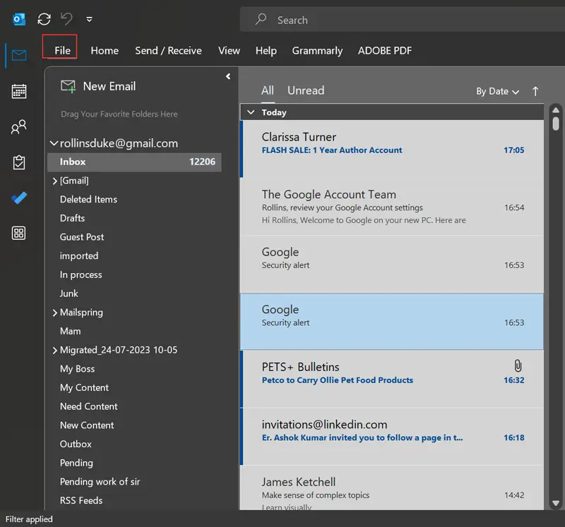- StartMS Outlook2021 und wählen Sie dasDateiOption.
