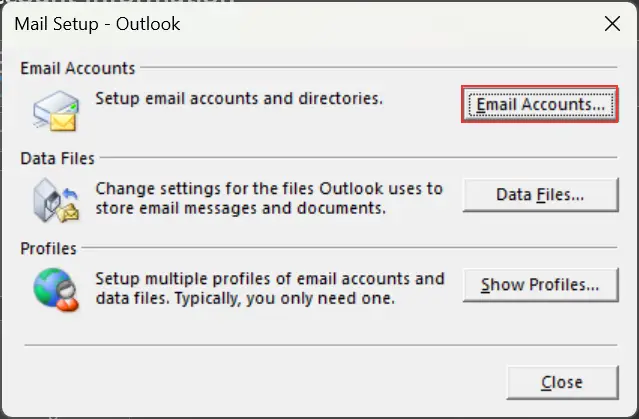 - Wählen Sie die ausE-Mail-KontenOption wie im folgenden Screenshot gezeigt.
