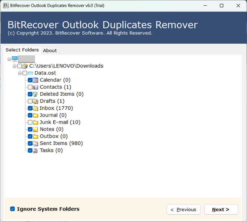 - Wählen Sie Outlook-Elemente ausaus dem Softwarefenster und drücken Sie die TasteNächsteTaste.
