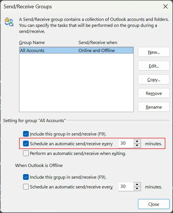 - Sende-/Empfangseinstellungen:Falsche Sende-/Empfangseinstellungen in Ihrem MS Outlook können zu Duplikaten führen. Überprüfen Sie diese Einstellungen noch einmal, um sicherzustellen, dass sie richtig konfiguriert sind.