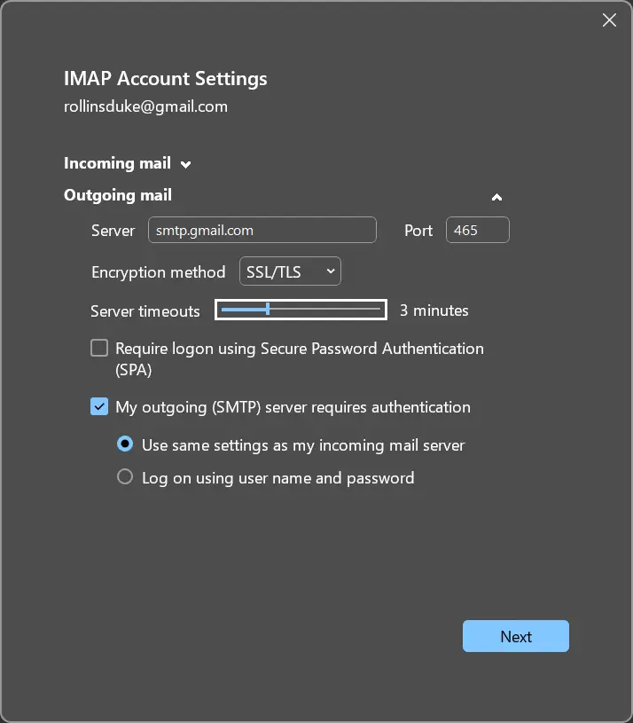 Mit Microsoft Outlook können Benutzerkonten konfiguriert werdenIMAP und POP3Protokolle. Sowohl das IMAP- als auch das POP-Protokoll geben Synchronisierungs-, Sende- und Empfangsantworten entsprechend den Timeout-Einstellungen. Sie müssen das Server-Timeout von 1 Minute auf 3 Minuten erhöhen, wenn Ihr Outlook mehrere Kopien einer E-Mail-Nachricht sendet.
