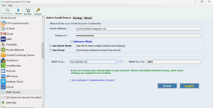 3. Geben Sie Ihre E-Mail-Anmeldeinformationen und Portdetails ein (IMAP-Server: mail.talktalk.net, IMAP-Portnummer: 993, Verschlüsselungsmethode: SSL/TLS)