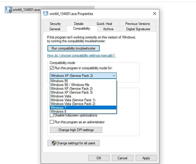 Sie können auch versuchen, den Treiber im kompatiblen Modus neu zu installieren, indem Sie die Schritte befolgen.