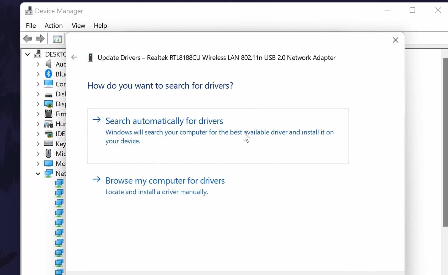 - WählenSuchen Sie automatisch nach aktualisierter Treibersoftware.